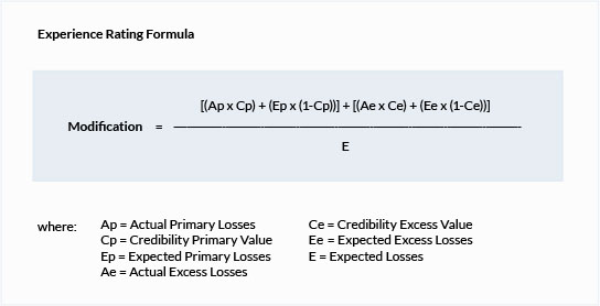 These factors are shown in the formula below, and are explained in the Experience Rating Form section.